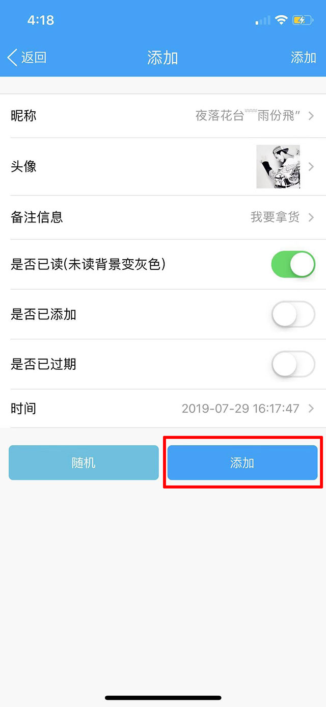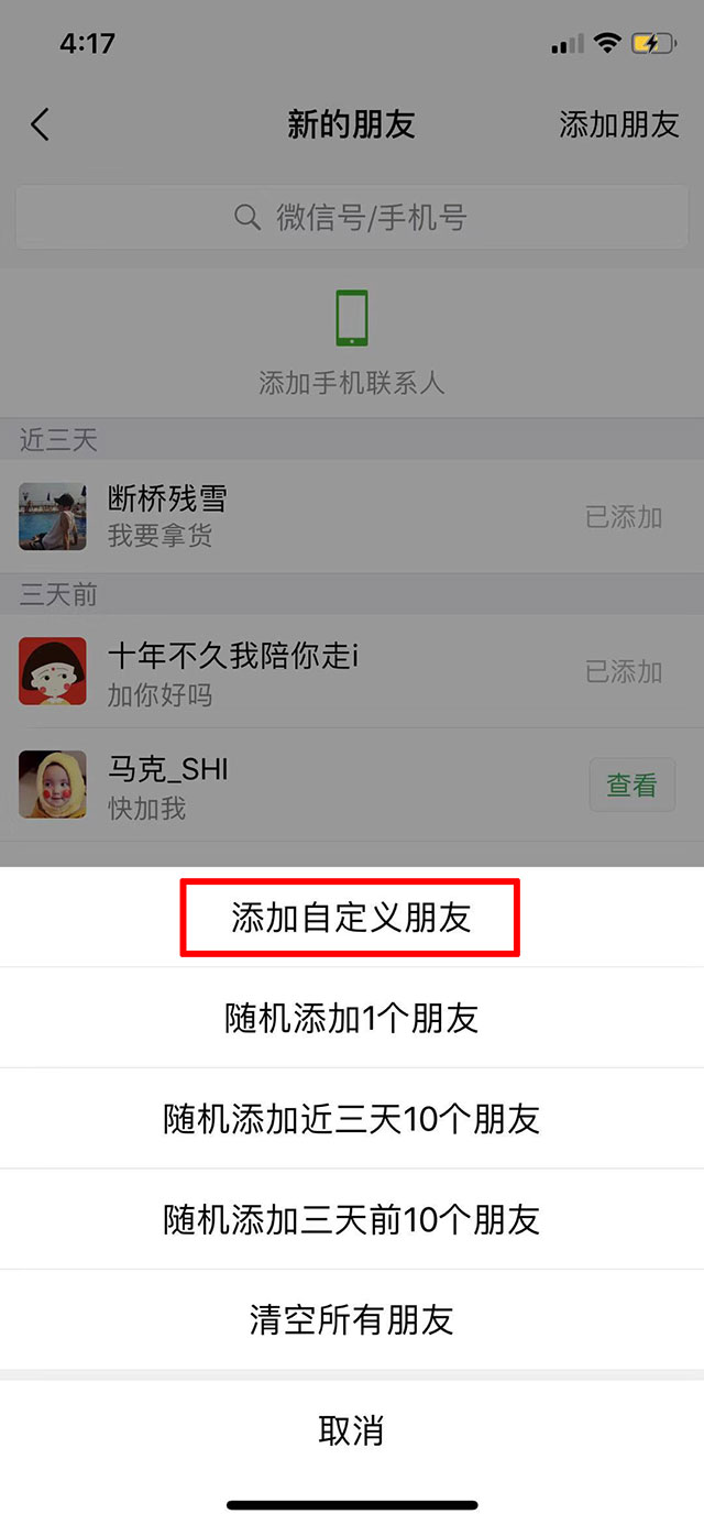 3.然后点击添加自定义朋友(或者可以点击随机添加朋友的按钮随机添加)